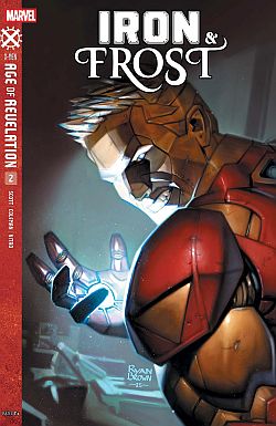 Iron & Frost 1: This is a story of the Age of Revelation. Revelation is Doug Ramsey. X (Ten) years ago, the X-Virus swept across the eastern United States turning millions into Mutants. Doug Ramsey as Revelation set up a refuge for them when the U.S. government tried to bomb them. Revelation turned the bomb on Washington D.C. and took over the U.S. The story starts 6 years ago at Avengers Mansion where Iron Man and War Machine fight off Seraphim (Mutants of Revelation). Emma Frost is almost lethally wounded and takes her Diamond form to stay alive while Iron Man rescues a young mutant from being taken by Revelation. The child's mother is killed by the virus. And, Tony takes the girl (Landslide) and Firestar and hides out in the Mansion that was partially destroyed in the battle and earthquake. Emma finally escapes and finds Tony in what is left of the Mansion. He has changed to the Iron King (flesh is Iron).